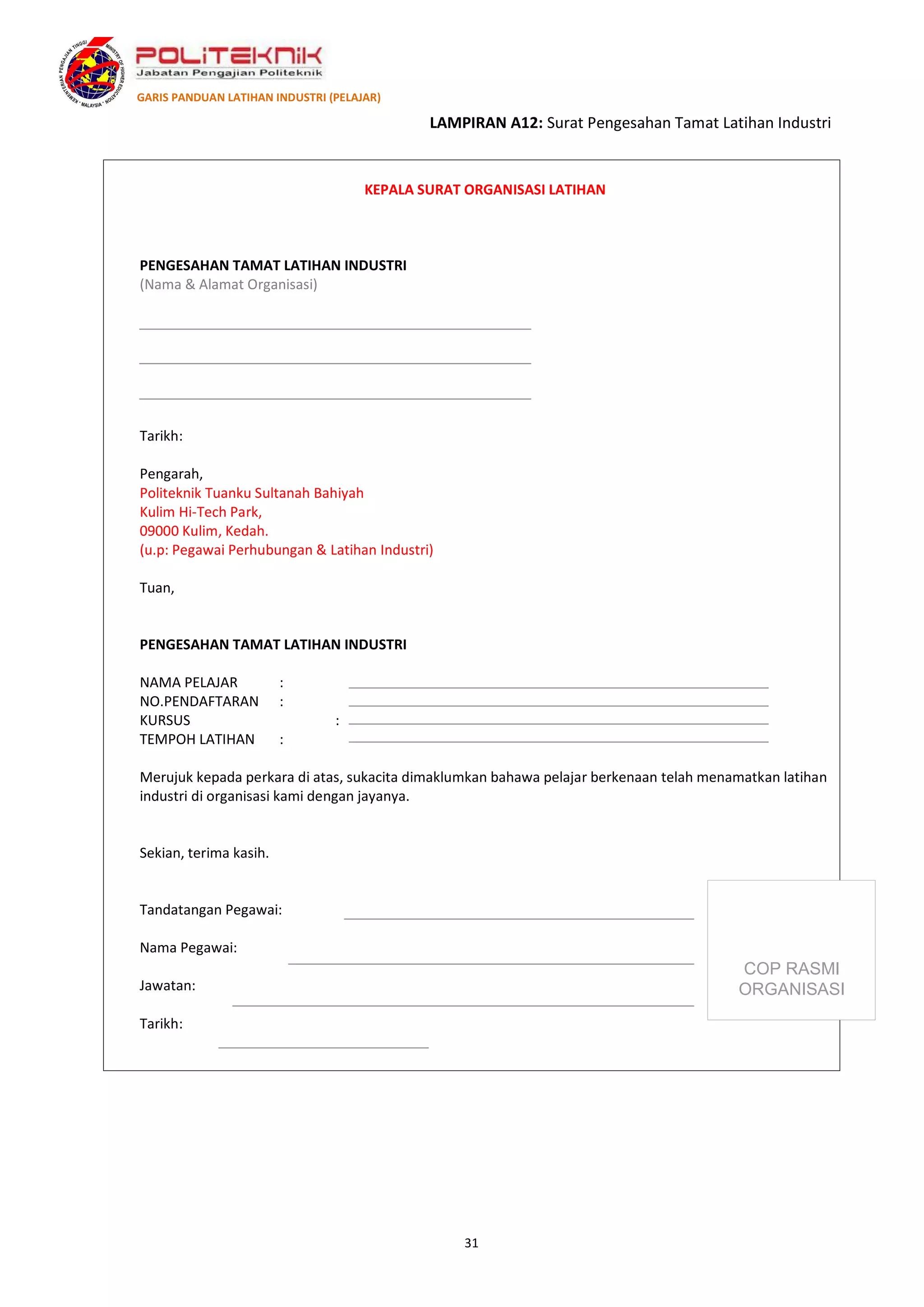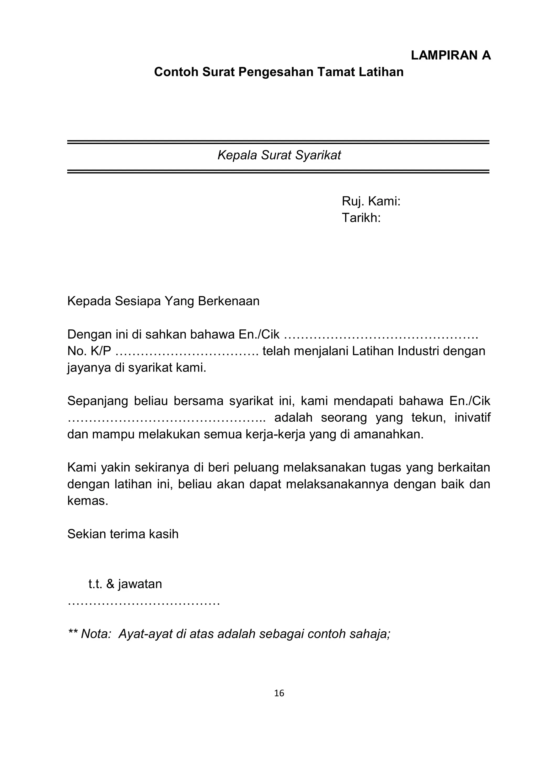 Surat Pengesahan Tamat Latihan Industri Pdf